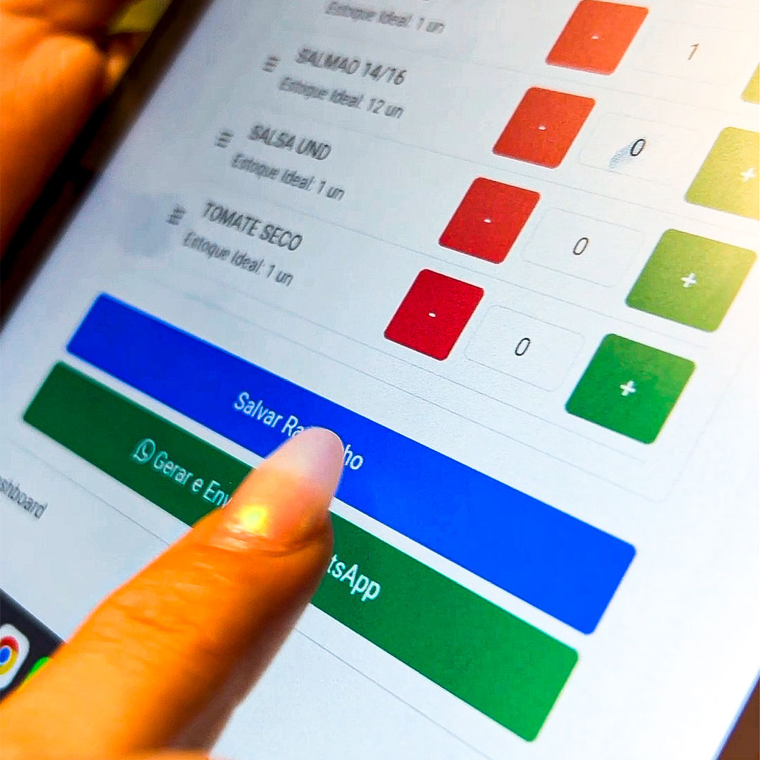 O processo todo leva 15 minutos agora. Meu gerente confere o estoque no app, gera as listas e eu só disparo os WhatsApps. Não esquecemos de comprar mais nada e evitamos excessos.